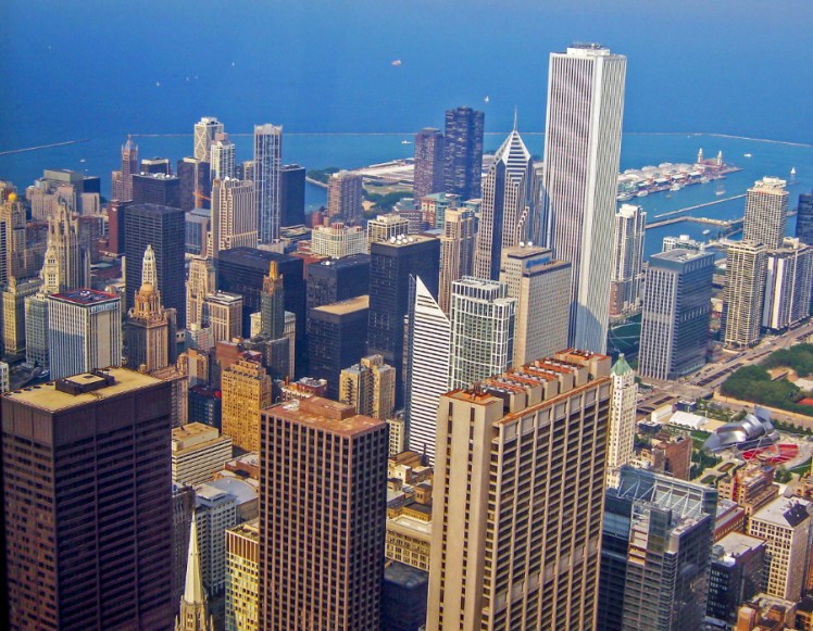 Джон Хэнкок Тауэр – это два в одном, миллион квадратных футов под офисы и 700 роскошных пентхаузов, а также знаменитый ресторан на 95-м этаже, откуда в ясный день открывается потрясающая панорама озера Мичиган. Кажется, что почти видно Канаду на том берегу… А еще башню периодически облетают истребители-перехватчики как раз на уровне ресторана – особая завлекаловка для туристов. Прикиньте, сидишь обедаешь, а за окном пролетают два сверхзвуковых, к примеру, F-18?