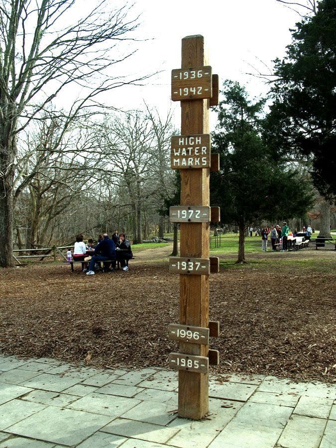 | Как-бы тотем с отметками, до какого уровня разливалась река в разные годы. |