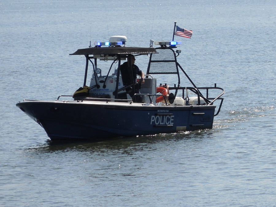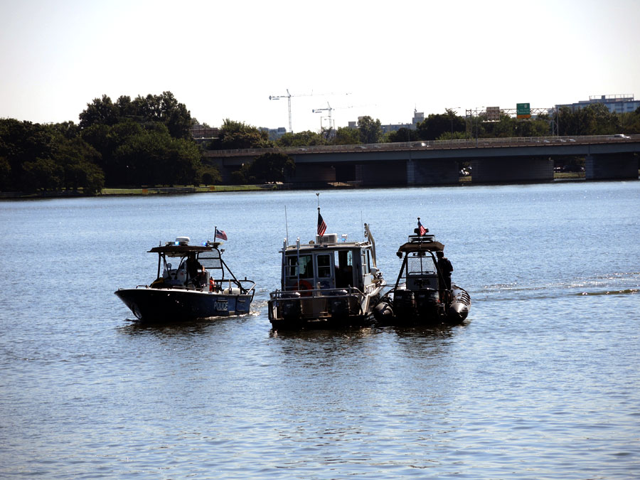 Качу себе на байке вдоль Потомака и наблюдаю вот такую картину: Три полицейских катера сгруппировались посреди реки и как-бы производят обмен мнениями: