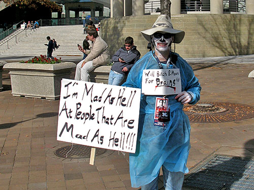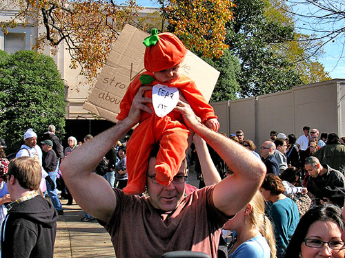 I am 55 and I hate crowds. Can’t be in a crowd. Went to a game once – Manchester United vs Liverpool – left in a panic long before it was over. But when I learned about Jon Stewart’s Rally to Restore Sanity and Stephen Colbert’s March to Keep Fear Alive in Washington D.C. on Saturday, I decided to take my chances. I suddenly felt it was the right thing to do, to crawl out of my hole once in a while.