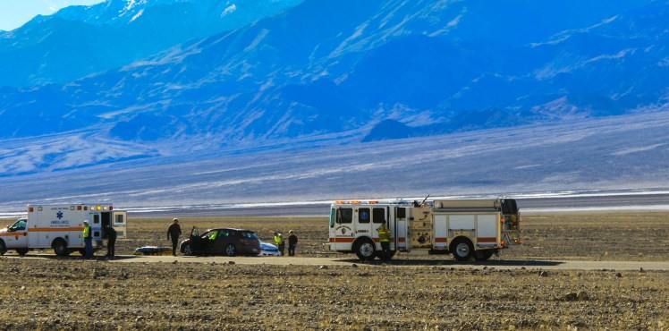 А на следующий день я увидел смерть, настоящую. Как вы думаете, от чего чаще всего гибнут люди в Долине Смерти? Месте, где летом температура поднимается чуть ли не до 145 по Фаренгейту? А вот и не угадали. В самом жарком месте на планете чаще всего гибнут не от теплового удара или обезвоживания, а банально в автокатастрофах. И вот это действительно интересный парадокс, а не какие-то движущиеся камни.